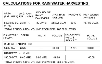 The concept of Rain Water Harvesting here is, existing drainage system was designed to take out all monsoon water, now it is changed by stopping the same and percolated there it self if the sand.