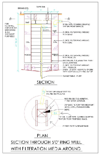 It was observed that there was possibility of having sweet water source existing in sandy soil on Eastern side. Hence Hydro-geological Survey was carried out to find out effective porosity than located four points, which are porous & likely to have caverns. We harvested rain water at these points so that we can retrieved it back. If we go deep here, it is likely that we may come across marine clay & may cause entry of brackish water, hence ring wells are advisable. & other three ring wells would be in the Southern part which will bring balance to the water supply.
