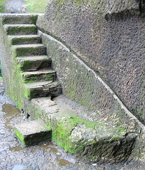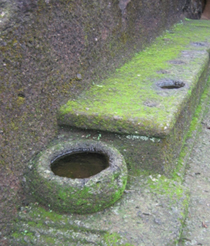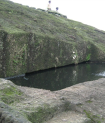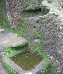 Preserving rain water in Catchments pits with carefully planned streams of water ducts curved in rocks.